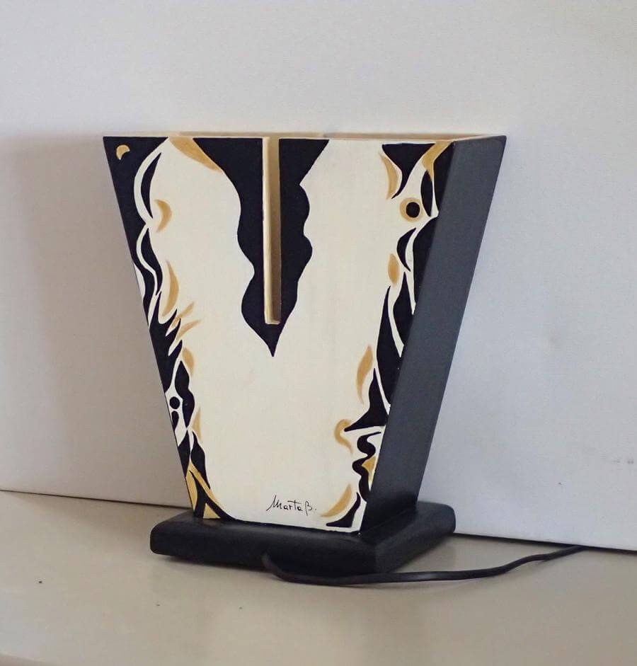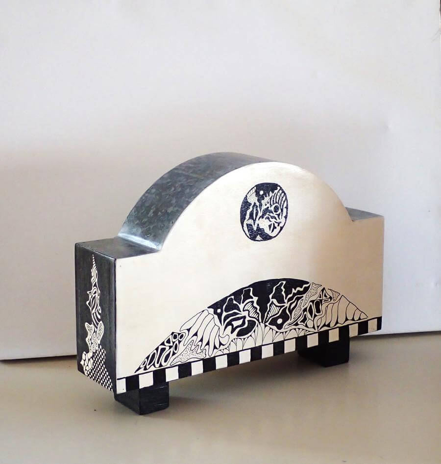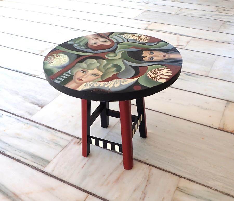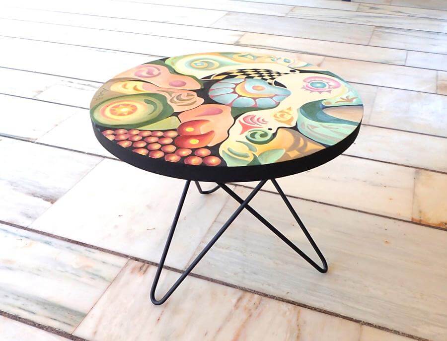Αφού ολοκληρώσω τη σχεδίαση, το design, μελετώ σχολαστικά την κάθε επιφάνεια. Μετά τη ζωγραφίζω με ακρυλικά χρώματα ή λαδιού. Τα αντικείμενα, σύμφωνα με τα σχέδιά μου, είναι άρτια κατασκευασμένα από έναν έμπειρο τεχνίτη. Χρησιμοποιώ ανθεκτικά υλικά, μέταλλο και κόντρα πλακέ θαλάσσης, συναρμολογημένα με “βελονάκια ή σπράγγες” (στη γλώσσα των ξυλουργών), για σταθερές συνδεσμολογίες.