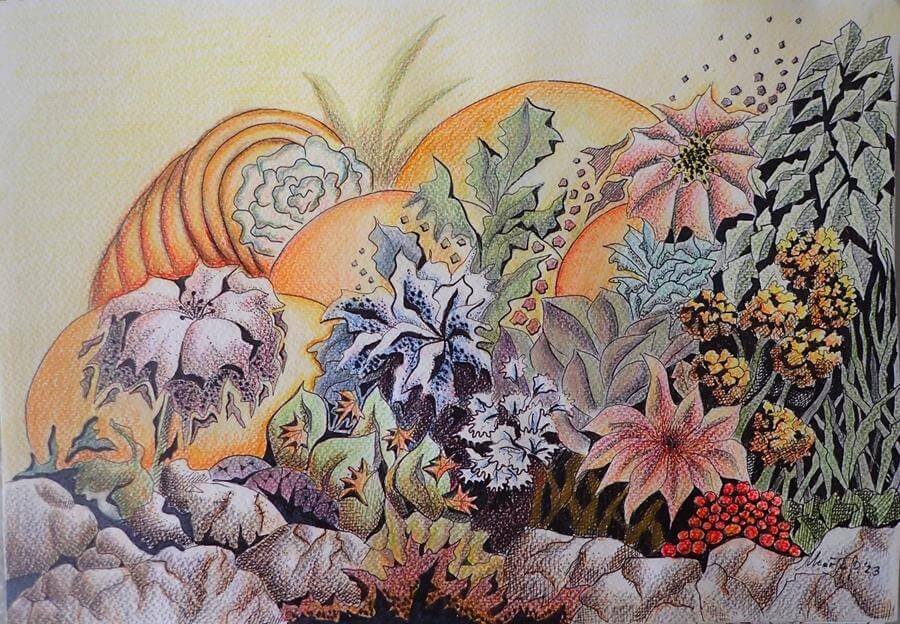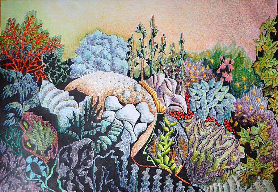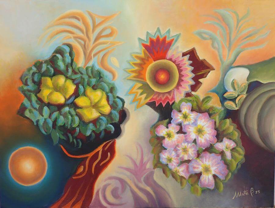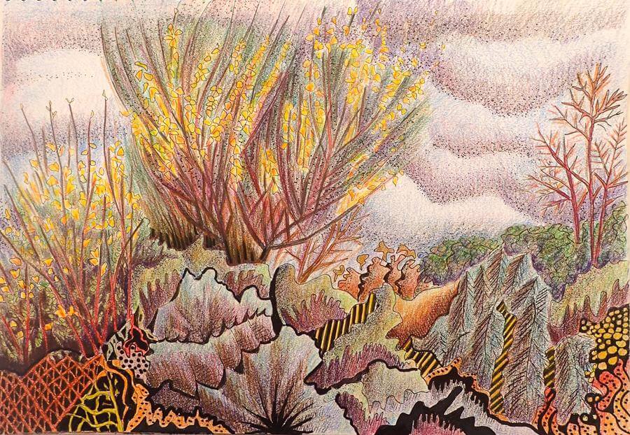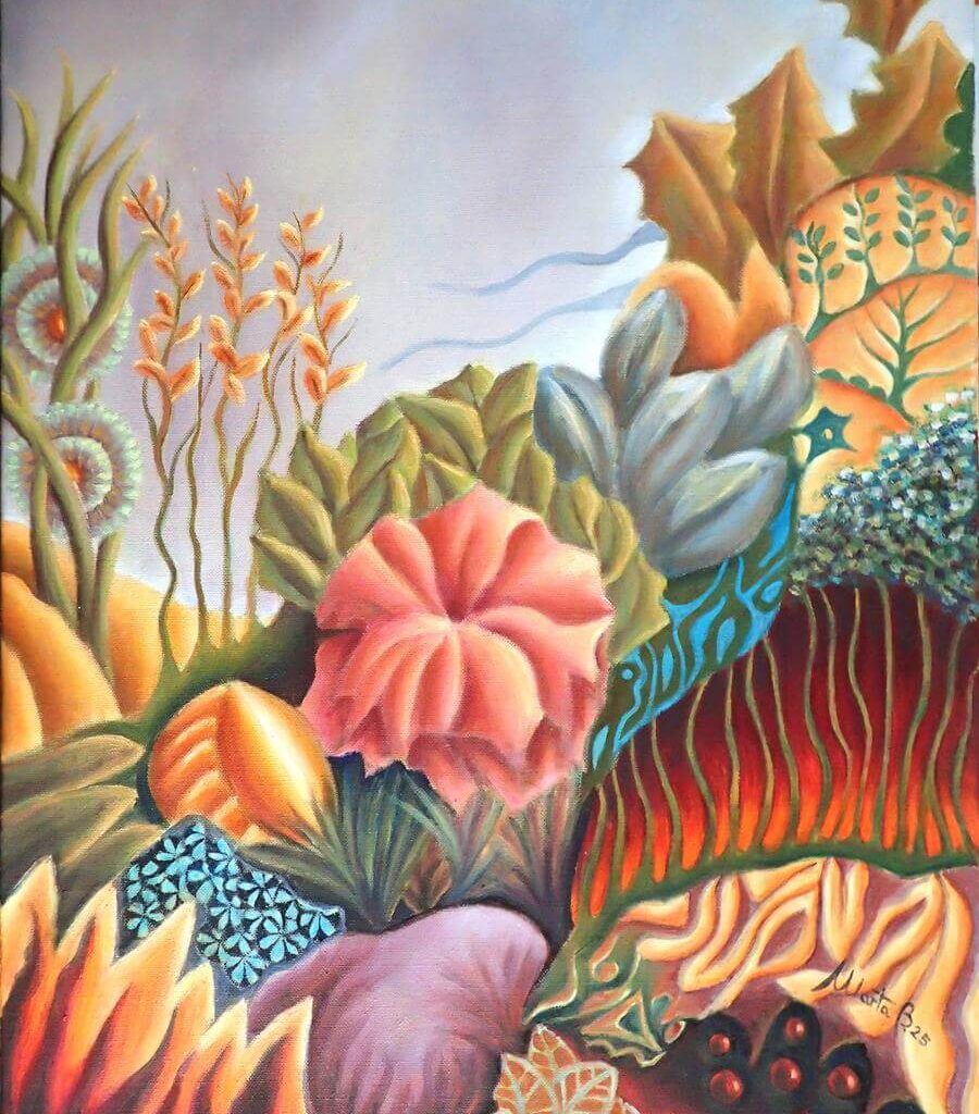 Με αυτές τις έννοιες, και πάντα μέσα από τις σταδιακές αλλαγές, η Marta Biagini παρατηρεί και αποτυπώνει όλα αυτά που εξελίσσονται γύρω της. Τα “μη απαιτητικά” ερεθίσματα της φύσης και τους χώρους της “μη ιεραρχίας”, που μας επιτρέπουν να ξεκουραστούμε. Χρώματα από τους θάμνους, φύλλα και κλαδιά, λουλούδια και έλατα. Ώρες ησυχίας και απομόνωσης, επαφής και αναστοχασμού. Ένας, χωρίς σύνορα, χώρος που μας κάνει να αισθανόμαστε σαν «το σπίτι μας στον κόσμο».