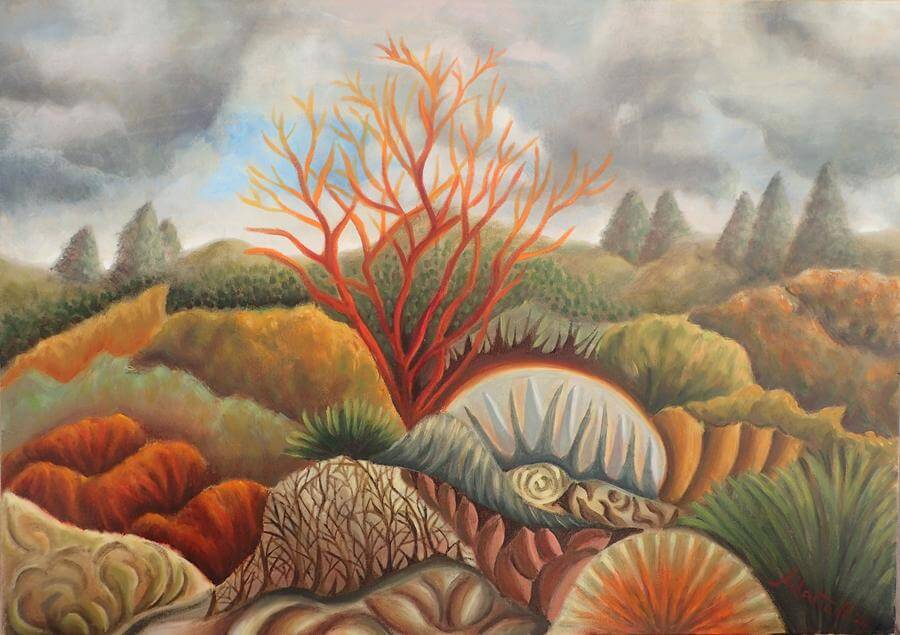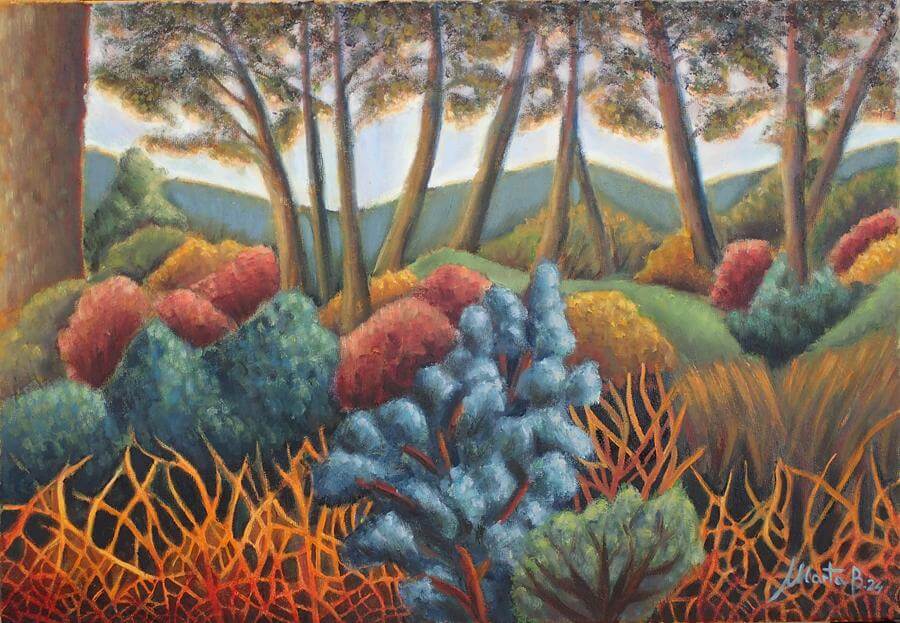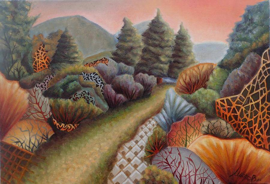 Η καινούργια δουλειά της Marta Biagini ερευνά το τοπίο. Έργα εμπνευσμένα από τη γη της Κόνιτσας, με μία όμορφη, ξέγνοιαστη και ιδανική ματιά, που γαληνεύει για λίγο την ψυχή μας και να μας ταξιδεύει νοερά σε ένα ειδυλλιακό, σχεδόν θεραπευτικό, κόσμο.